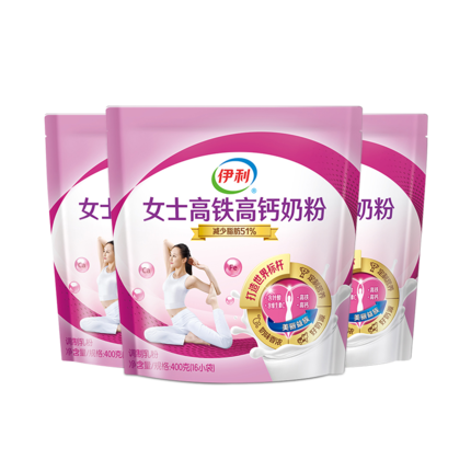 伊利旗舰店 女士高铁高钙奶粉400g*3袋 营养奶粉