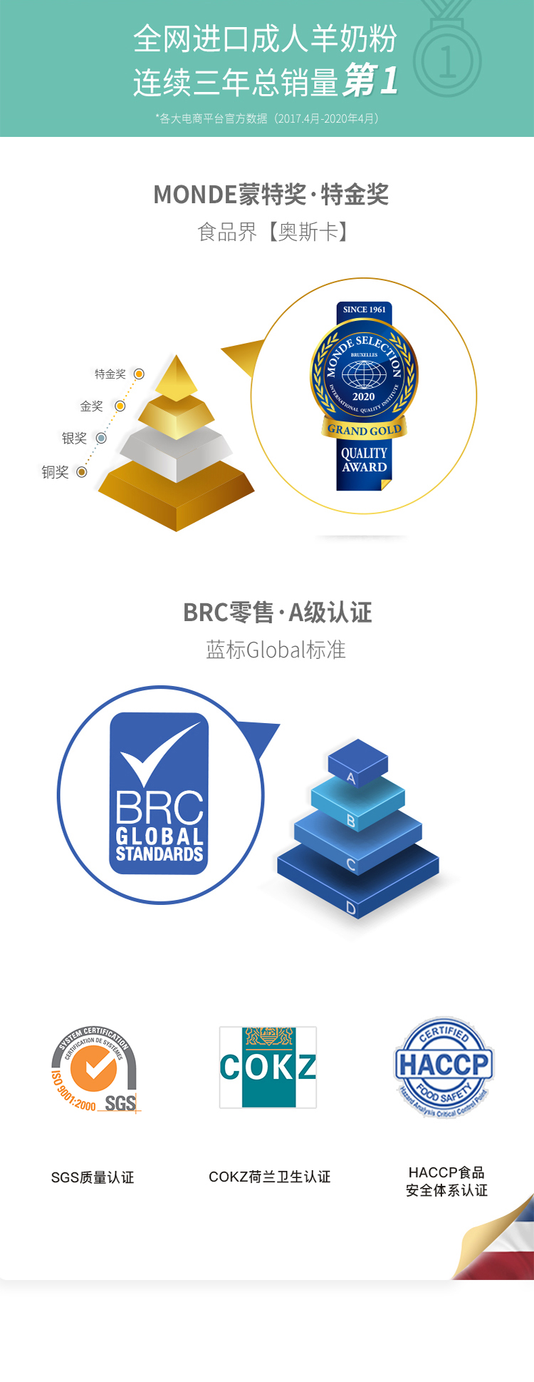 荷兰进口风车牧场小绿盒高钙纯羊奶粉成人学生中老年人女士奶粉