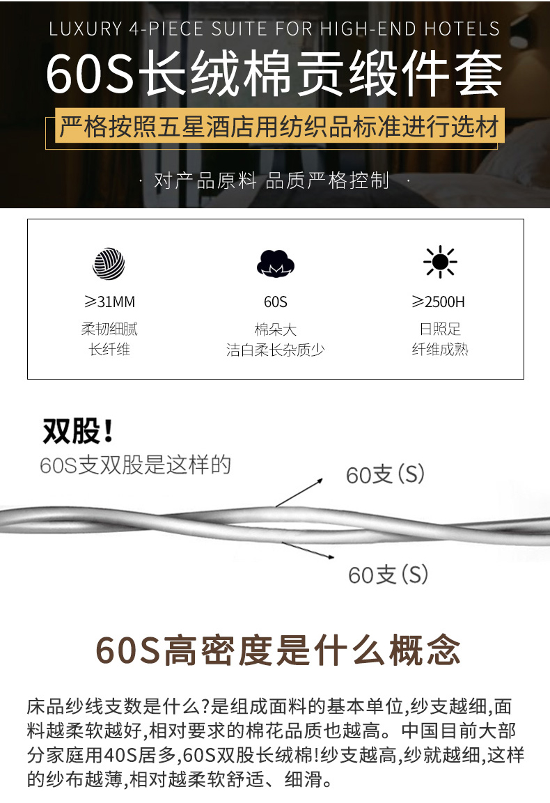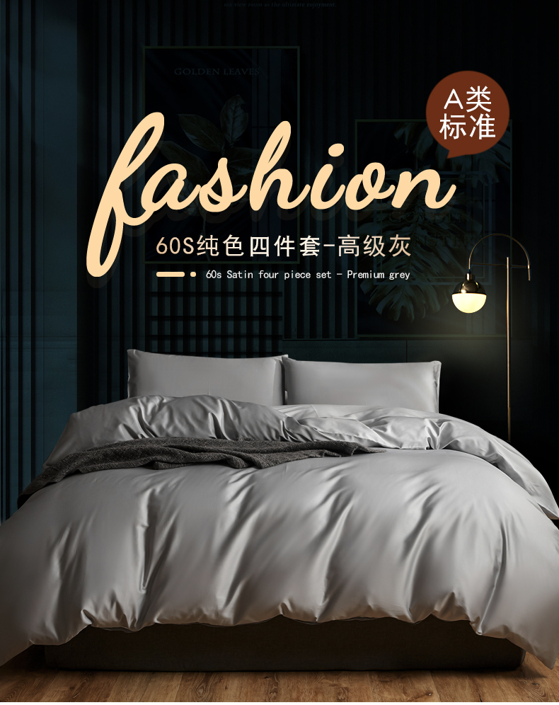 床上现代风四件套60贡缎长绒棉1.2/1.35米全棉纯棉床笠床单三件套